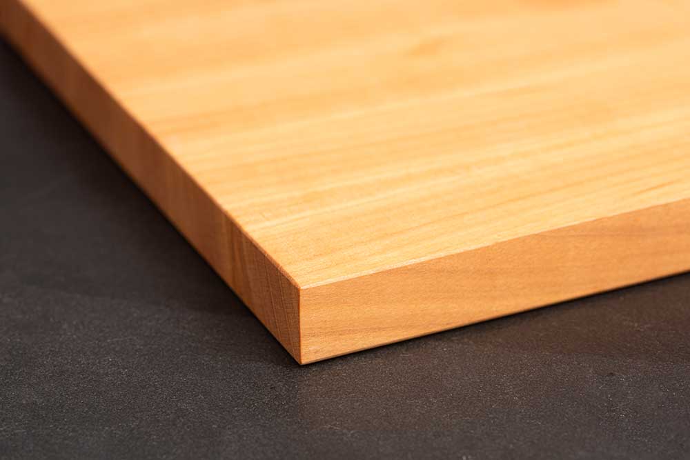 Entdecken Sie auch unsere besonderen Schneidebretter mit Akzentstreifen! Sie kombinieren die Wärme von Kirschholz mit der Tiefe von Nussbaumholz oder umgekehrt, um einzigartige und faszinierende Designs zu schaffen.